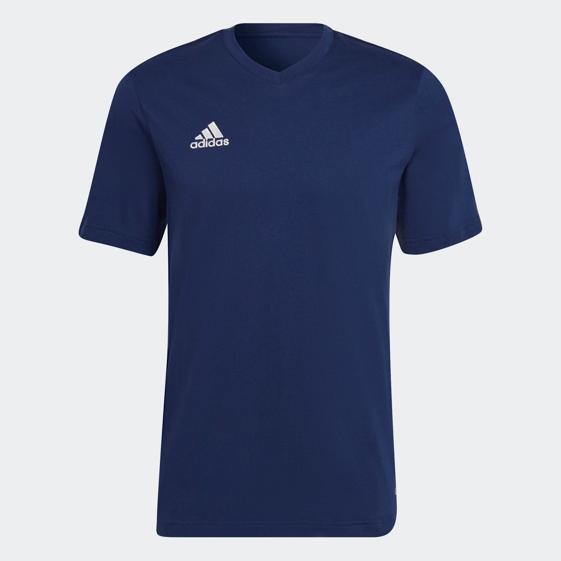 Take adidas style with you wherever you go. This V-neck tee has football inspiration through and through. Made with comfortable cotton jersey, it's an everyday classic.Adidas cotton products support more sustainable cotton farming.