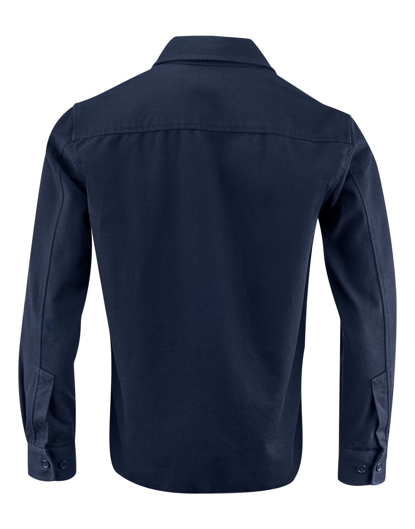 • Unlined unisex overshirt in cotton twill fabric with a collar, yoke at the back
